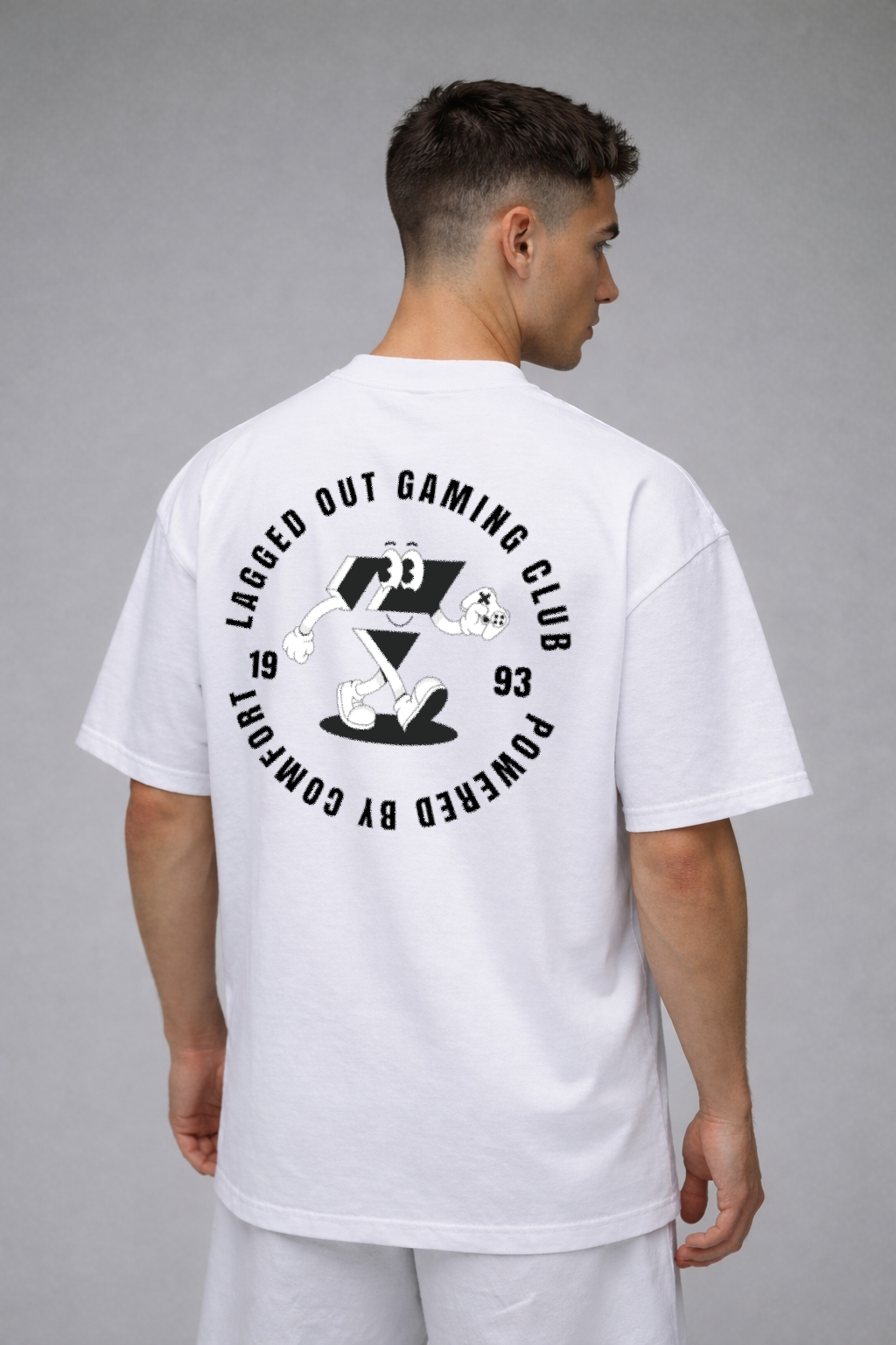Gaming Club Laggy Tee – Ghost white base paired with our black Laggy mascot graphic.